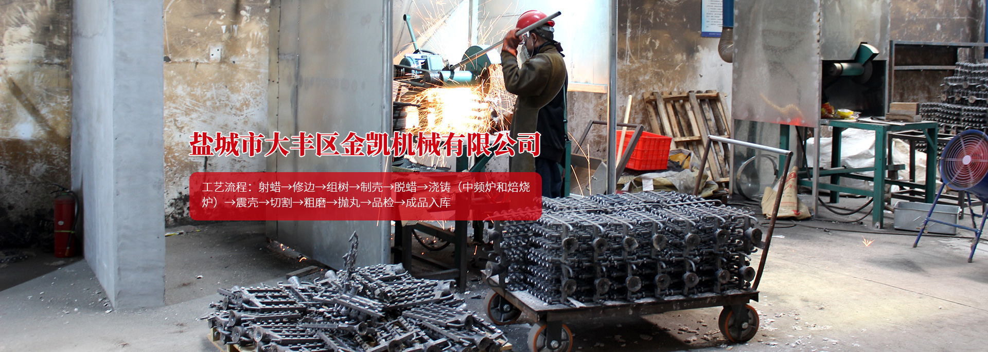 鹽城市大豐區金凱機械有限公司坐落在黃海之濱、風光秀麗的江蘇大豐區南陽工業園。水陸空交通便捷,公司距上海市和蘇州市都在200公里左右。公司創建于2011年,生產建筑面積近10000平方米,現有員工70多名,技術工程師和管理人員均為經驗豐富的專業人員,責任心強。本公司采用全硅溶膠制殼生產線,可生產不銹鋼、碳鋼、合金鋼、高溫合金、耐磨合金鋼等多種材質的鑄造件,產品廣泛應用于汽車配件、船用裝備、醫療器械、五金工具、衛浴配件、機械動力配件、食品器械等行業。 公司產品遠銷各地,深受國內外用戶的歡迎和信賴。